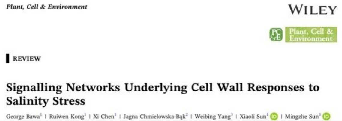 George发表论文《Signaling networks underlying cell wall responses to salinity stress》系统总结了植物细胞壁响应盐胁迫机制的最新研究进展,表明该领域存在知识空白,并提出创新性研究思路,为破解细胞壁响应盐胁迫作用机制中的未解难题提供了解决方案。硕士研究生孔瑞文与教师陈茜为共同第一作者,孙晓丽教授与孙明哲教授为共同通讯作者。研究获国家重点研发计划(2021YFF1001100)、国家自然科学基金(32341033)及黑龙江省自然科学基金(YQ2023C035)联合资助。