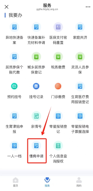 1.进入龙江医保(小程序/公众号)。 2.点击【我要办】,选择【慢病申请】进行相应的待遇认定。